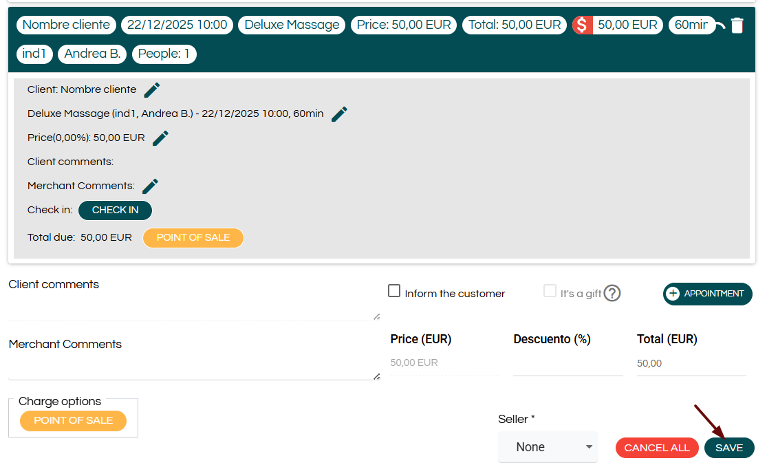 You can specify who will attend the appointment, even if it is not the same person as the booking holder. - Seller comment (per appointment)