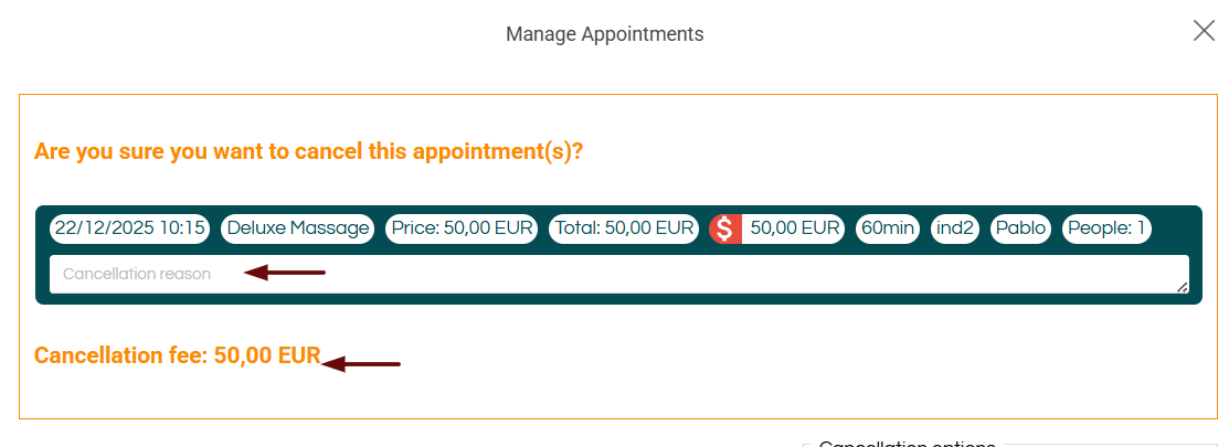 💡 Tip: You can request an advance payment when creating the booking to cover possible future cancellations.