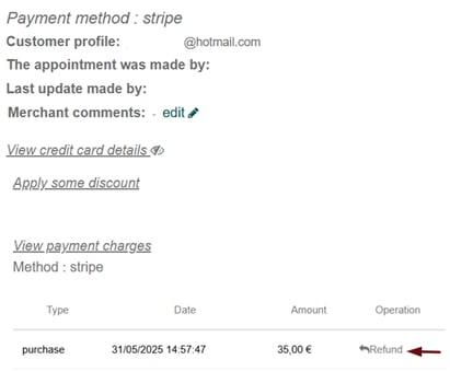 If the appointment was created manually in the Agenda, you will not have access to the customer’s card details.