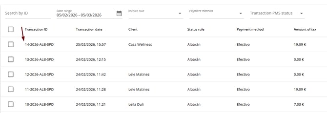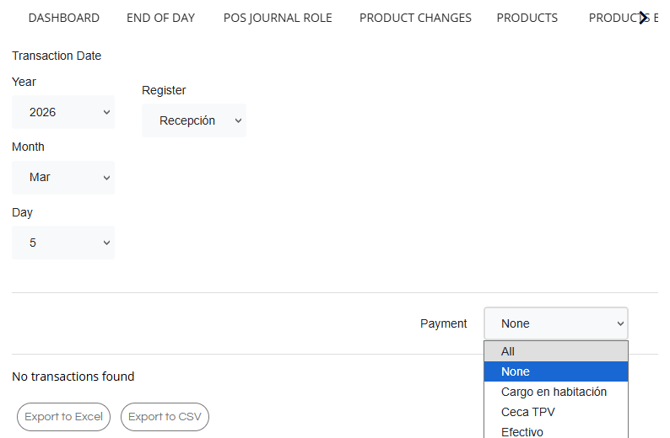 🔍 How it works: By default, only transactions completed with a payment method are displayed. If you are looking for a voucher redemption transaction, change the filter to “None” in the top-right corner.