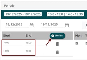 If you need to configure another date range or schedule for the same resource, click + Period.