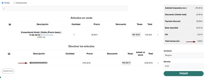 Tras añadirlo, se generará automáticamente una segunda línea con el ID del bono y su importe.