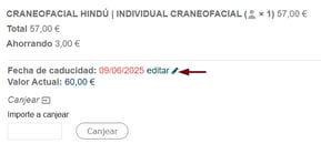 💡Si un cliente solicita canjear un bono que ha expirado y el centro autoriza la ampliación, puedes modificar la validez accediendo a Listados > Bonos y editando la fecha directamente desde la confirmación del bono mediante el icono de lápiz. Guarda los cambios y el bono quedará actualizado, permitiendo su uso en el Punto de venta.