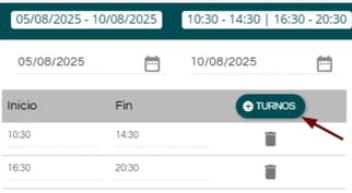 • Si es un turno partido, usa el botón de +Turnos.