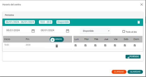 Si tu centro tiene horarios partidos o diferentes según el día de la semana, debes configurarlos en esta sección.