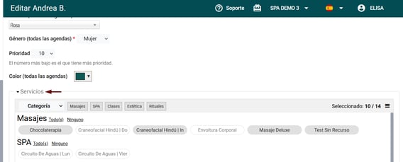 💬 Por ejemplo, la profesional Andrea B. tiene una cita creada en el Spa Demo 3 a las 9 h del día 14/01: