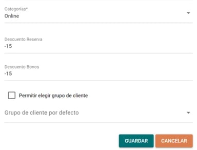 Si el código promocional va a utilizarse en el Motor de reservas, debes seleccionar "online".