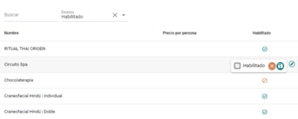 • Activa o desactiva la casilla del tratamiento correspondiente.