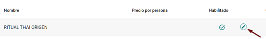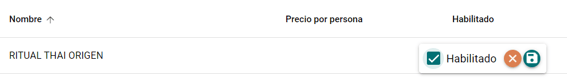 Al abrirse, sitúate sobre el servicio, pulsa Editar, activa o desactiva la casilla y guarda cambios. - Desde Gestionar > Tratamientos/Paquetes