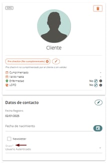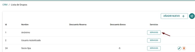 Por defecto, el sistema habilita automáticamente el nuevo grupo de cliente en todos los servicios, y su disponibilidad puede tardar unos minutos en reflejarse.