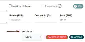 Los vendedores pueden seleccionarse tanto desde la Agenda como desde el Punto de venta.