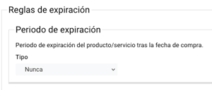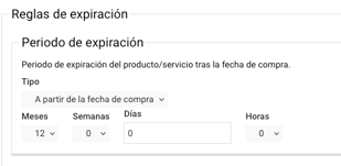 En este apartado podrás definir el periodo de validez de los bonos tras su fecha de compra. Dispones de tres opciones: