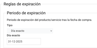 Día exacto: establece una fecha concreta en la que los bonos caducarán.