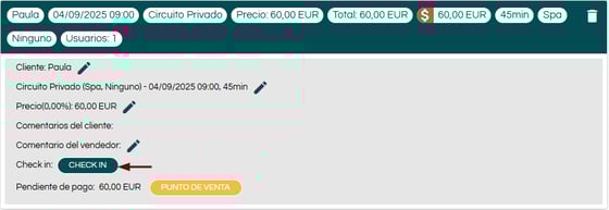 • Abre la cita, haz clic en el botón de check-in y guarda los cambios.