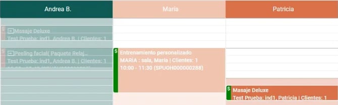 💬 Por ejemplo, en el caso de las citas programadas para Andrea, todos los clientes han asistido y su registro ha sido procesado, mientras que las citas de María y Patricia aún están pendientes.
