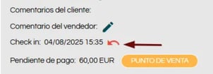 • Si necesitas deshacerlo, abre de nuevo la cita, haz clic en la flecha roja que aparece junto a la fecha de check-in y guarda los cambios.