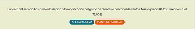 Se actualiza automáticamente el precio según la nueva tarifa. -