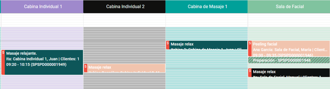 Las citas se mostrarán con el color del recurso (cabina o sala) donde se realicen.