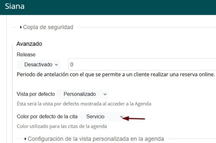 Desde un usuario con permisos de spa manager, accede a Agenda > Ajustes > Avanzado > Color por defecto de la cita. En el desplegable podrás seleccionar el tipo de configuración que necesites.