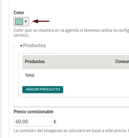 Para configurarlo, ve a Gestionar > Tratamientos > Selecciona el tratamiento deseado > Avanzado > Color y asigna el color: