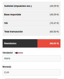 Cuando el importe añadido y el total coincidan, se activará el botón Finalizar.