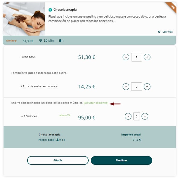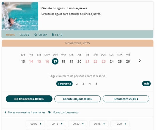 💬 Por ejemplo: masaje a cuatro manos (dos terapeutas y un cliente) o acceso al circuito spa (no requiere terapeuta).