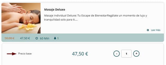 📌 Este importe aparecerá como “Precio base” en la Agenda y en el Motor de reservas, a menos que hayas configurado una Etiqueta del precio base específica en el apartado de traducciones. En ese caso, dicho texto personalizado sustituirá “Precio base”.
