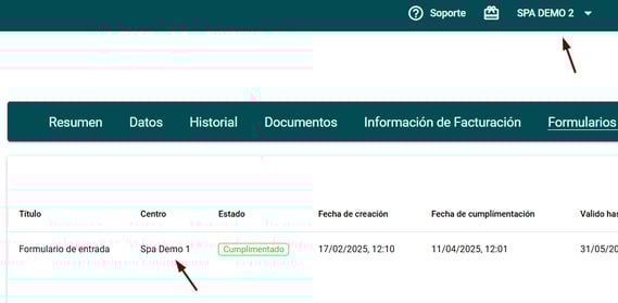 - El cliente podrá completar los formularios en cualquiera de los centros que tenga la funcionalidad activa, sin que esto elimine las respuestas dadas anteriormente: