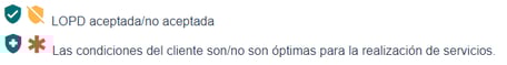 - Al crear una nueva cita, podrás comprobar mediante iconos si el cliente ha aceptado la LOPD y si cumple con las condiciones médicas necesarias.