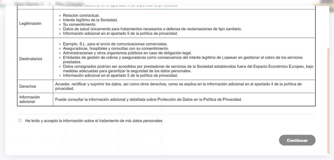 ⚠️Debido a la complejidad necesaria para cumplir con el nivel alto de la RGPD (el requerido para almacenar datos específicos de salud), hemos decidido avanzar con el descargo de responsabilidad estándar que muchos de ustedes ya estaban utilizando, garantizando así el cumplimiento de la normativa por ambas partes.