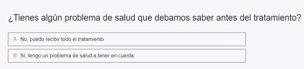 - ¿Tienes algún problema de salud que debamos saber antes del tratamiento? Sí/No