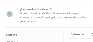 De forma opcional, puedes añadir un mensaje destacado en la parte superior del Motor de reservas, justo antes del listado de tratamientos.
