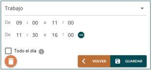 Modifica el horario del día que necesites ajustar creando dos turnos de disponibilidad y dejando un intervalo intermedio como no disponible.