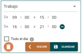 Puedes definir hasta dos franjas horarias distintas por día, asegurándote de que exista un intervalo entre ambas (no pueden ser continuas).