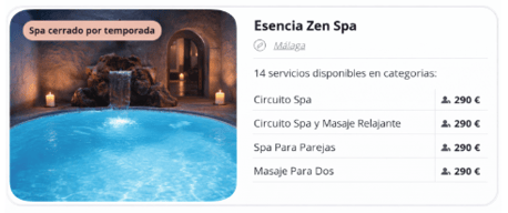 En el listado de resultados: Aparecerá un aviso de "Spa cerrado por temporada" sobre la imagen principal de tu centro.